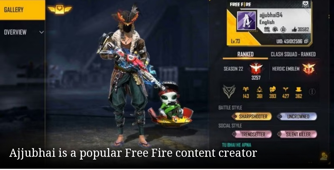 Ajjubhai’s real name is Ajay. His Free Fire ID is 451012596. Here are his latest in-game stats: